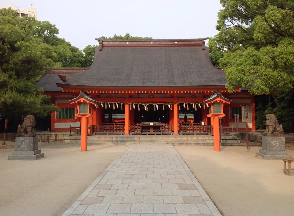 講演会その2。博多駅から会場まで徒歩でした。途中に住吉神社があったのでお参りしました。大きな古代の力士像や綺麗な紫陽花が咲いていました。