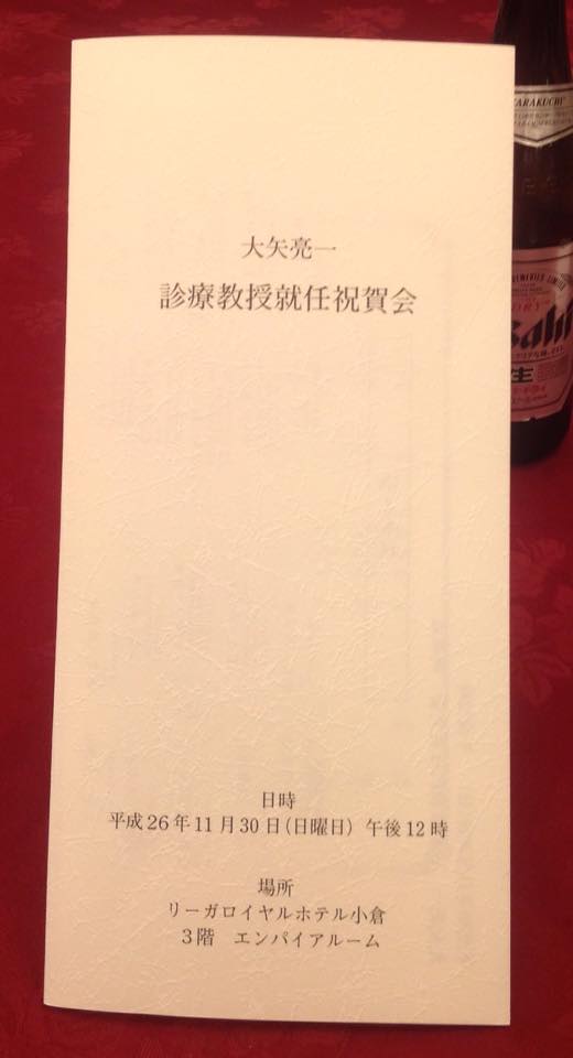 今日は、大矢亮一先生の産業医科大学臨床教授就任祝賀会に出席しました。地域歯科医療を高める為には、我々開業医と産業医科大学や九州歯科大学等の3次医療機関が連携を取りながら臨床を行うことが大切です。相互理解と協力が必須です。大矢教授、これからもよろしくお願いします!